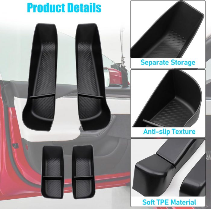 Jaronx Compatible con Tesla Model S 2021-2024, 4 bandejas de almacenamiento de puerta delantera y trasera modelo S, bandeja organizadora de bolsillos de puerta para accesorios modelo S 2021 2022 2023