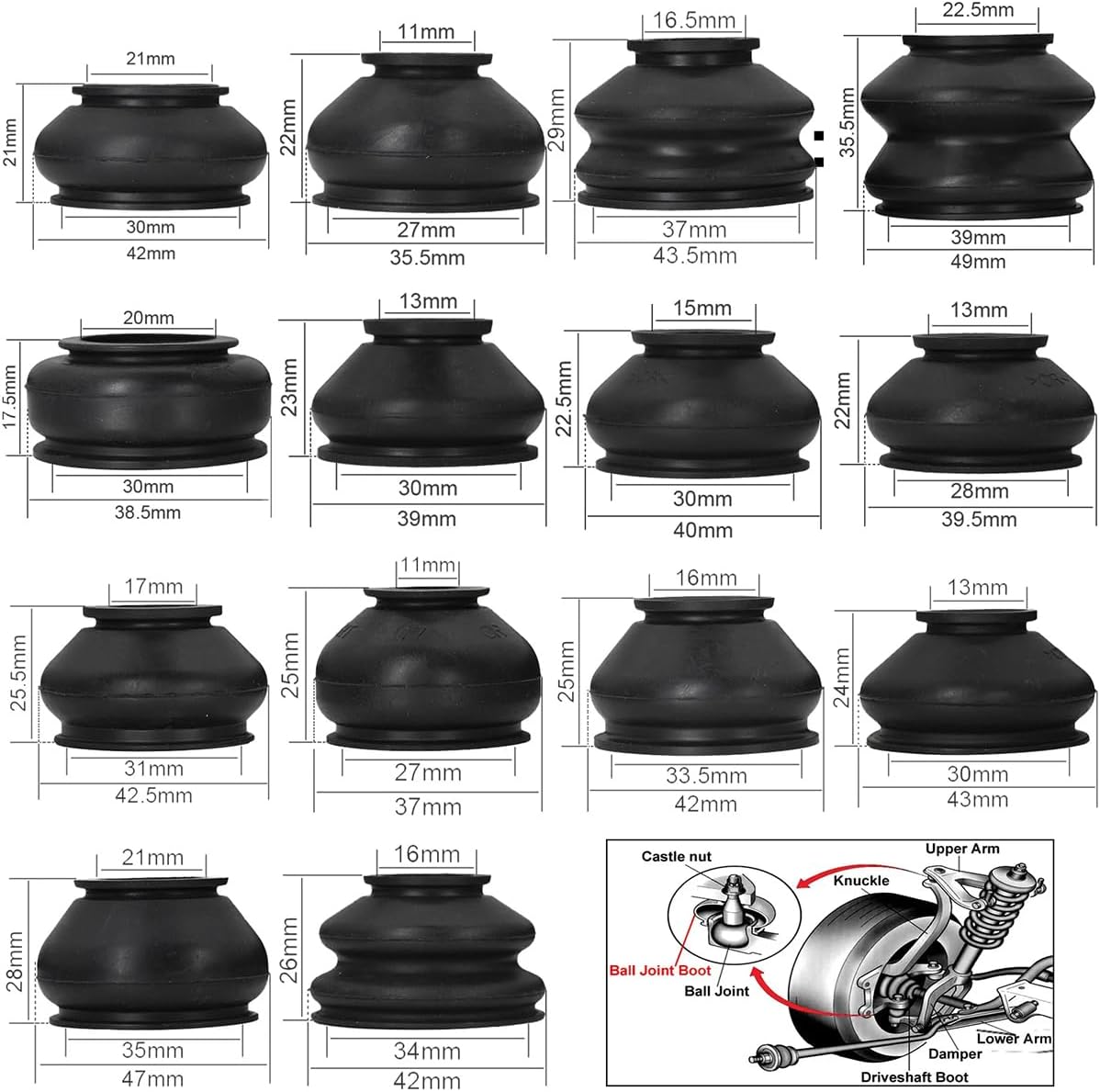 JNNJ 14 Pieces Automobile Ball Joint Dust Cover, Rubber Cover Universal Dust Spherical Gasket, Dust Spherical Gasket for Ends Rod Coupling And Ball Joints, Auto Accessories