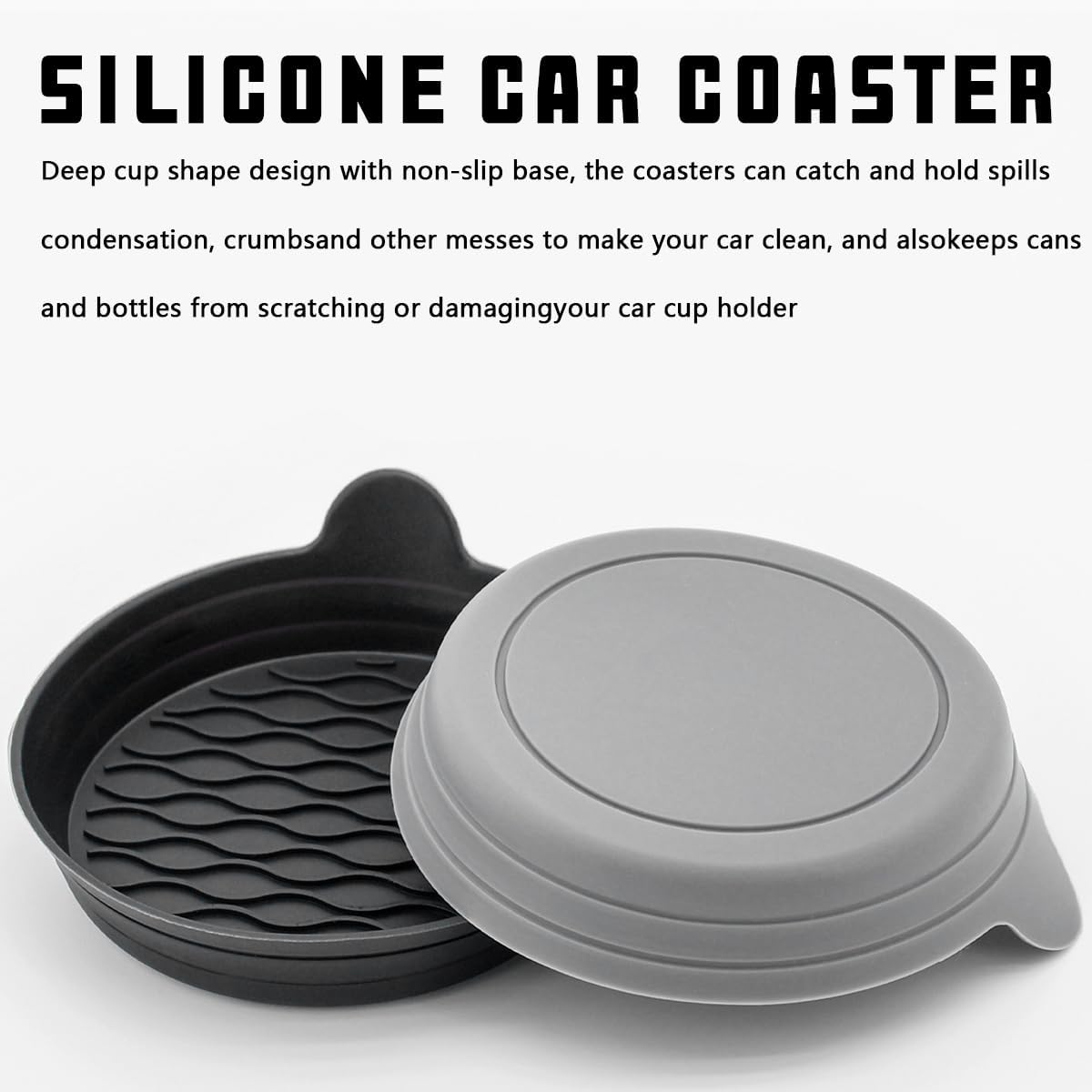 【Universal Design】These cup mats have a top opening diameter of 3.25 inches and a universal deep cup design, the rim has a 1.1 inch short handle for easy access. The car mount is suitable for most cars, trucks, vans and SUVs. You can also use it at home and in the office, durable, odorless and perfect for everyday use.