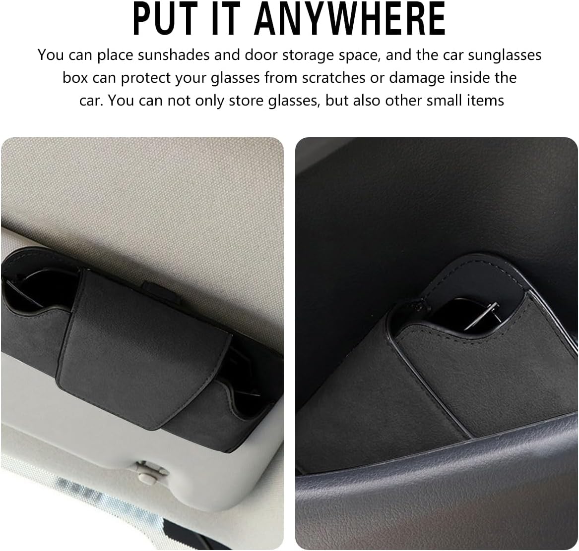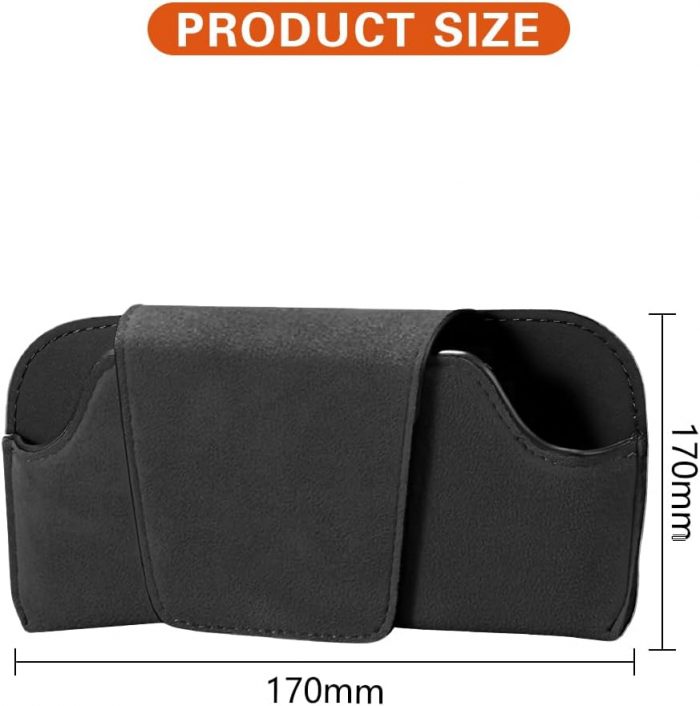 【Wide Applications】:The sunglasses holder for car is easy to install and the magnetic design holds the glasses case securely to the sun visor. The pockets are large enough to accommodate glasses with larger frames. It is perfectly designed to fit most cars, SUVs and trucks sunshades as well as most sunglasses.