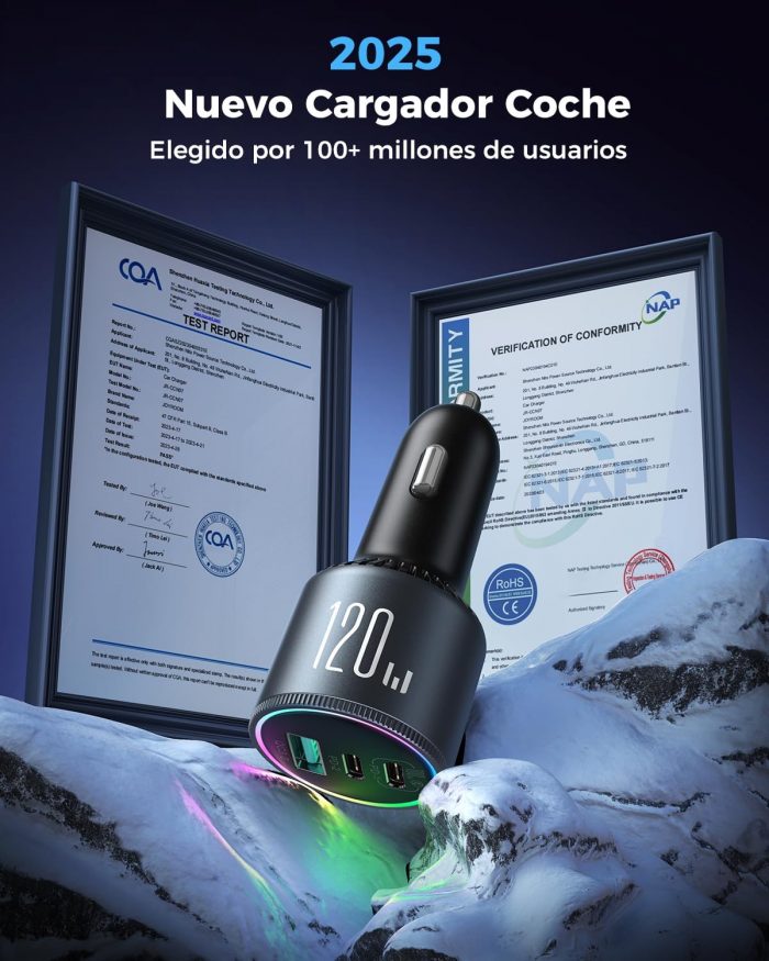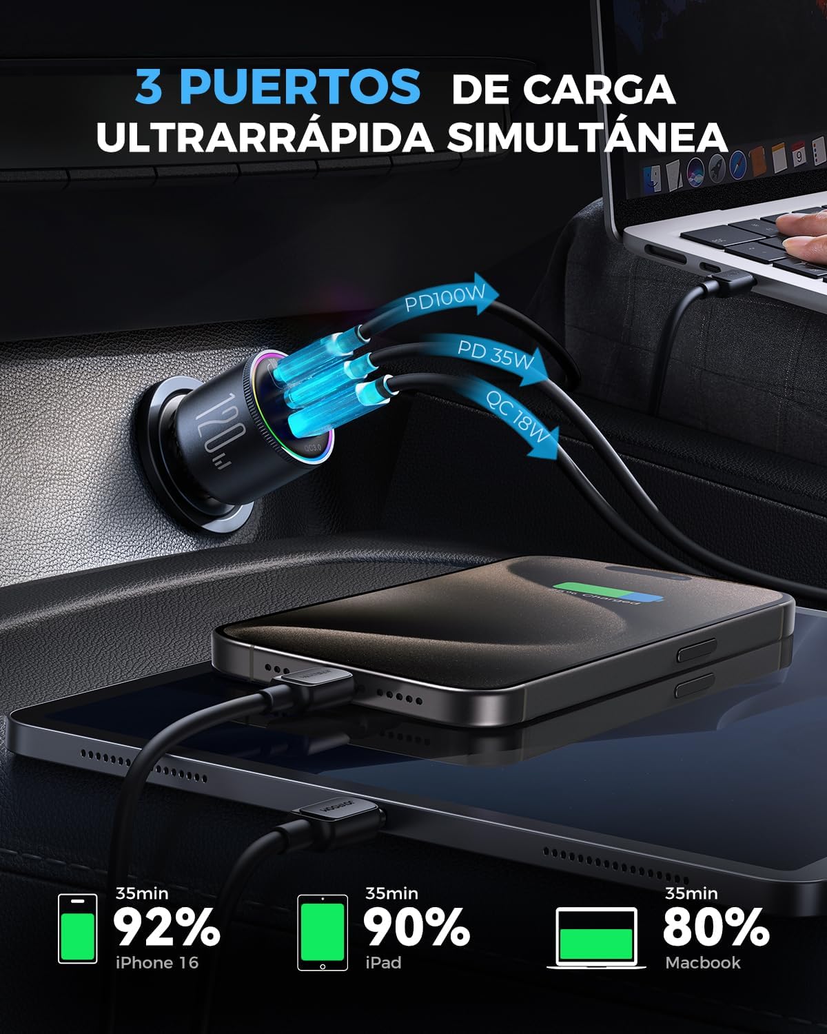 Sé el primero en valorar “JOYROOM 120W 3 Ports Car Charger Fast Charging with USB-C Cable 100W, [3 Chips] Car Cigarette Lighter Charger, PD100W & QC3.0 Cigarette Lighter Socket 12V for iPhone17/16/Samsung S25/24/Phones/iPad” Cancelar la respuesta