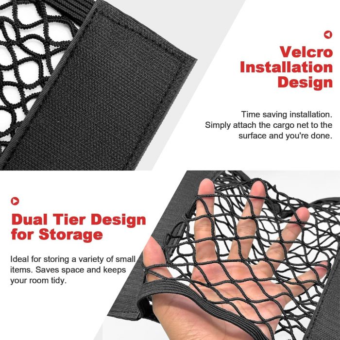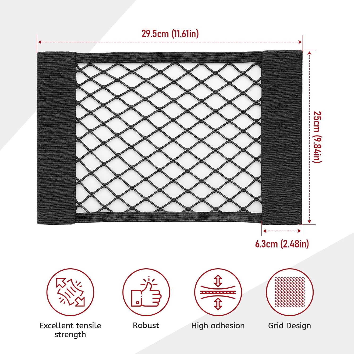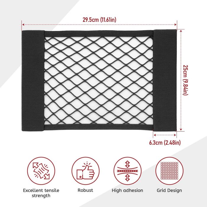 Simple installation: Storage net requires no drilling, screws or complicated operations. Just clean the installation surface, remove the protective film from the adhesive tape on the back of the net, and firmly press the net into the desired position (such as the back of the seat), leaving for a moment to fix it securely. When disassembling, it will not damage the interior of the car and will be easily removed without leaving residue