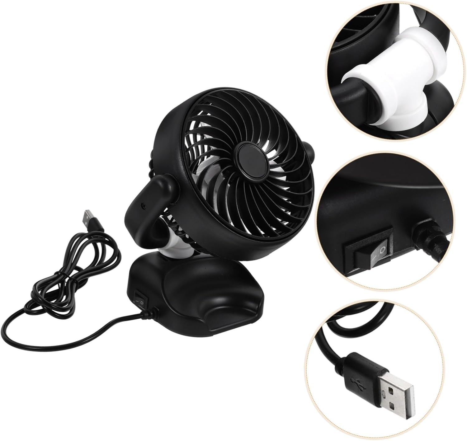 Método de uso: USB – multiusos: se puede utilizar como ventilador de enfriamiento en verano y como ventilador de circulación para calefacción en otoño e invierno – diseño montado en el automóvil: fácil de instalar en el automóvil, ocupa espacio, este ventilador de enfriamiento puede brindarle comodidad, ventilador de vehículo multifuncional, ventilador de difusión de circulación interna