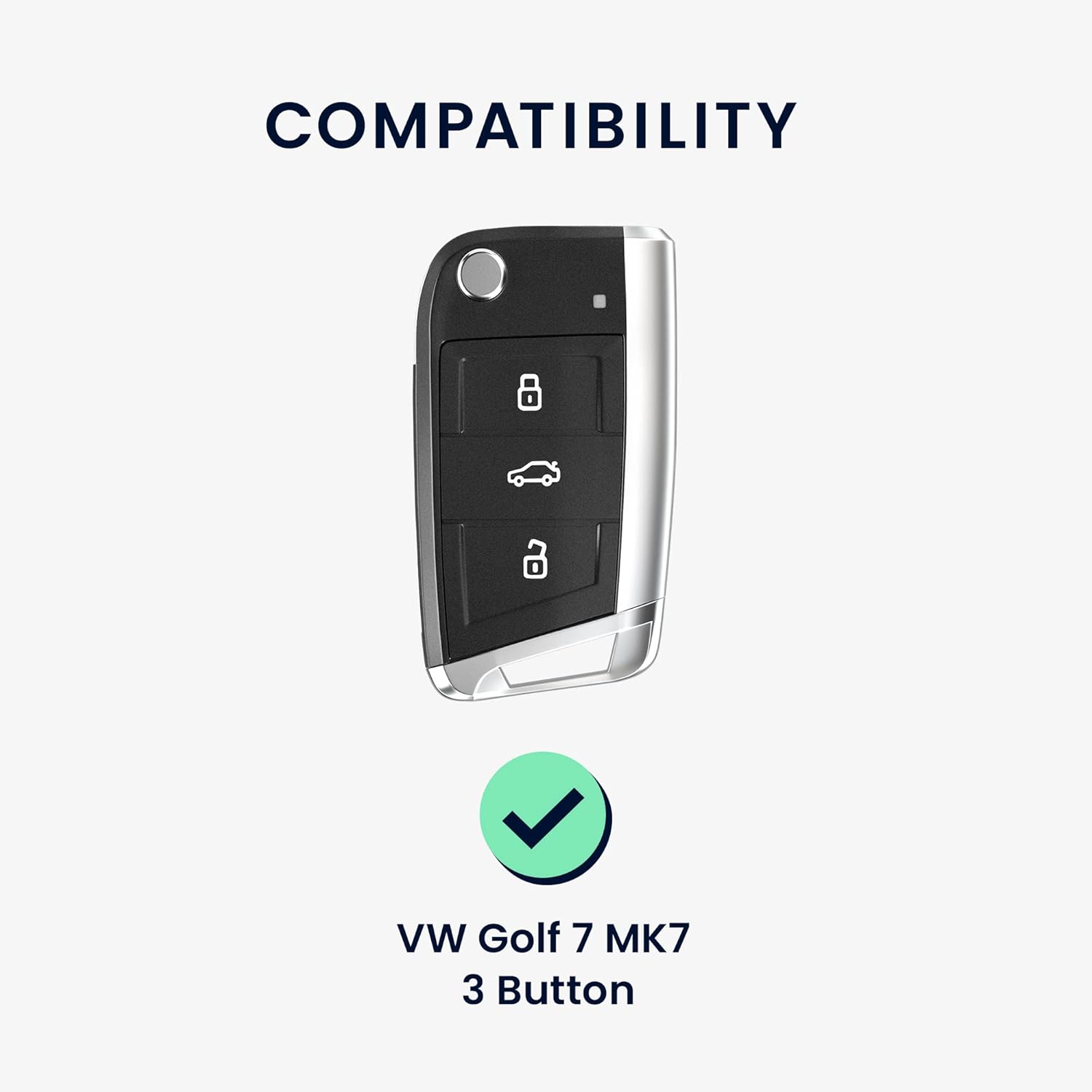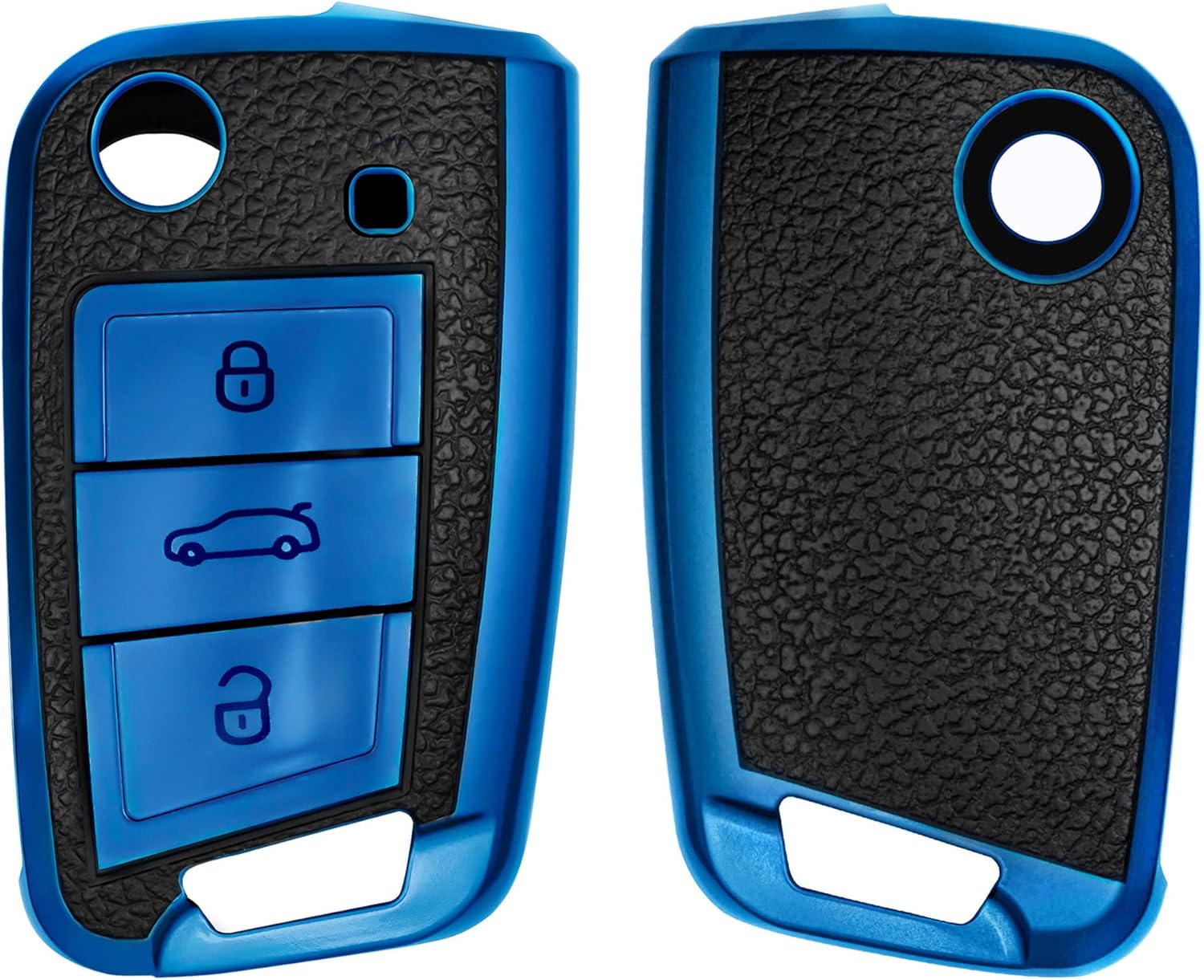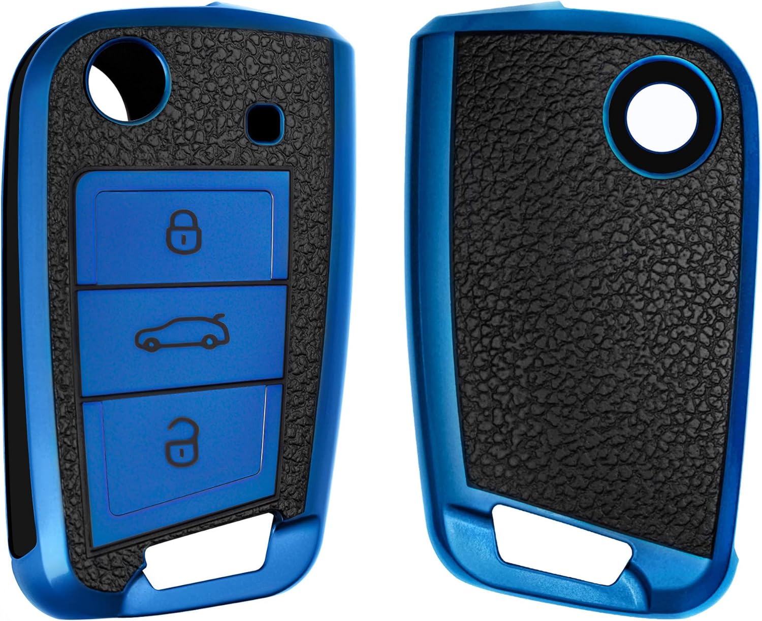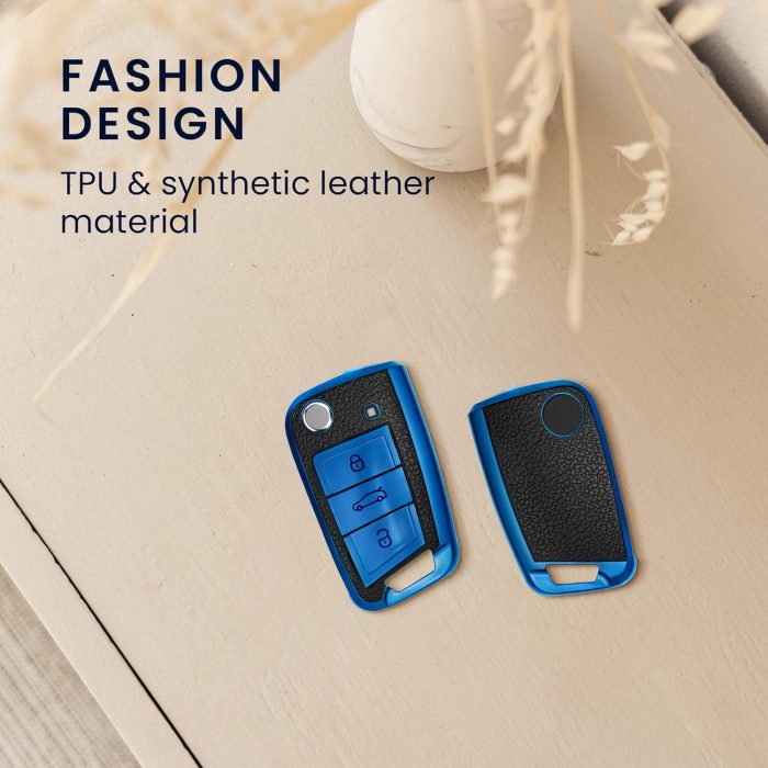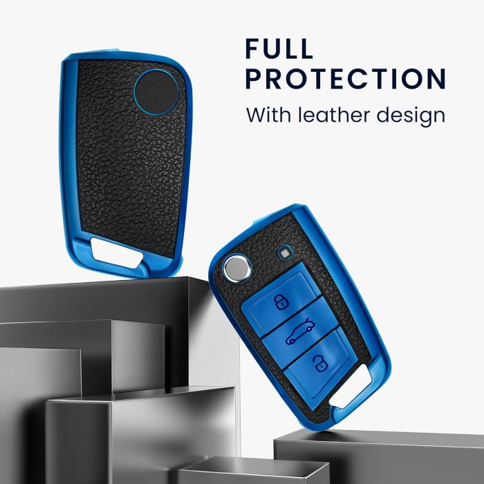 kwmobile Car Key Case Compatible with VW Golf 7 MK7 – TPU Leather Type Case with Buttons for Car – Blue/Black