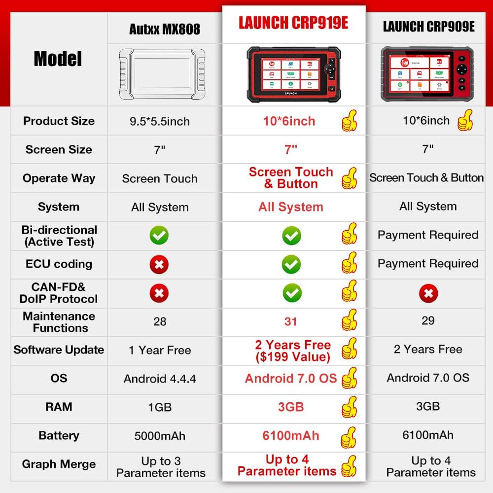 LAUNCH CRP919E OBD2 Herramienta de diagnóstico de sistema completo con control bidireccional, codificación ECU, todo el sistema a nivel OE, más de 31 funciones de reinicio (actualización gratuita de 2 años)