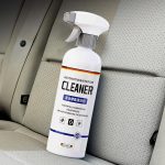 Cleaning upholstery sofa, carpets, car, dry mattress. Car upholstery cleaner, fabric stain remover for cleaning car interior. Home cleaning products.