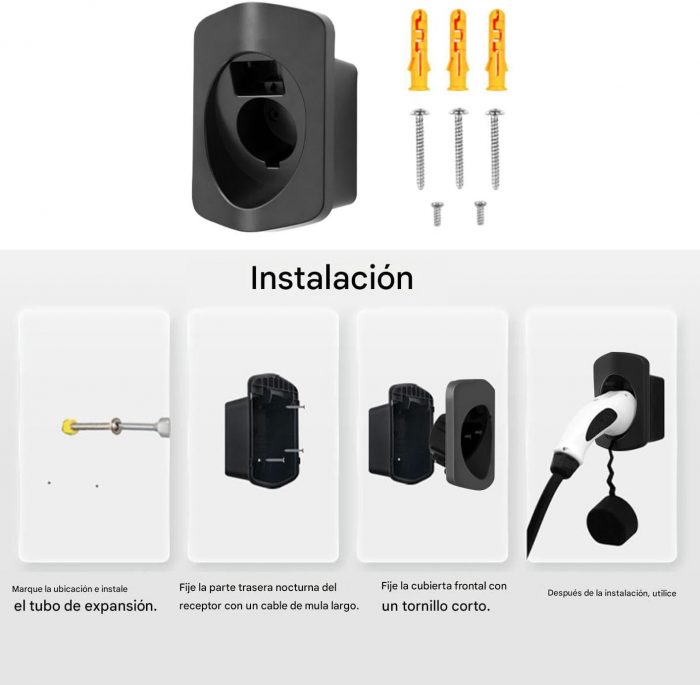 Conveniente para instalar: con unos pocos tornillos necesarios, este soporte de cable de carga de automóvil se puede fijar de forma segura a la pared, proporcionando acceso fácil y con una sola mano al cargador