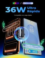【WIDE APPLICABILITY】: The car charger differs from the traditional 2 USB car mobile charger, has a PD 36W fast Type-C port and a QC3.0 fast USB A port, which makes it can be used for both the old version of Samsung Galaxy, Google, OPPO, Xiaomi, Apple, Huawei and other Android mobile phones; and can also quickly charge the new version of iPhone 17. Air 16 e 15 14 13 Pro Max mini, Samsung S23 S25, USB-C port can even directly charge tablets, kindles and power banks.