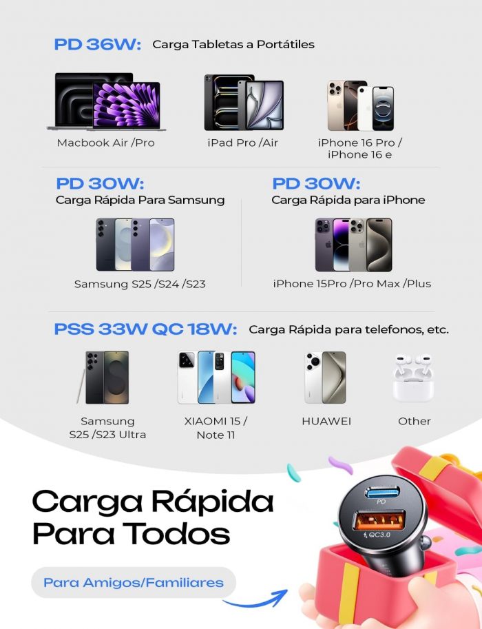 【WIDE APPLICABILITY】: The car charger differs from the traditional 2 USB car mobile charger, has a PD 36W fast Type-C port and a QC3.0 fast USB A port, which makes it can be used for both the old version of Samsung Galaxy, Google, OPPO, Xiaomi, Apple, Huawei and other Android mobile phones; and can also quickly charge the new version of iPhone 17. Air 16 e 15 14 13 Pro Max mini, Samsung S23 S25, USB-C port can even directly charge tablets, kindles and power banks.