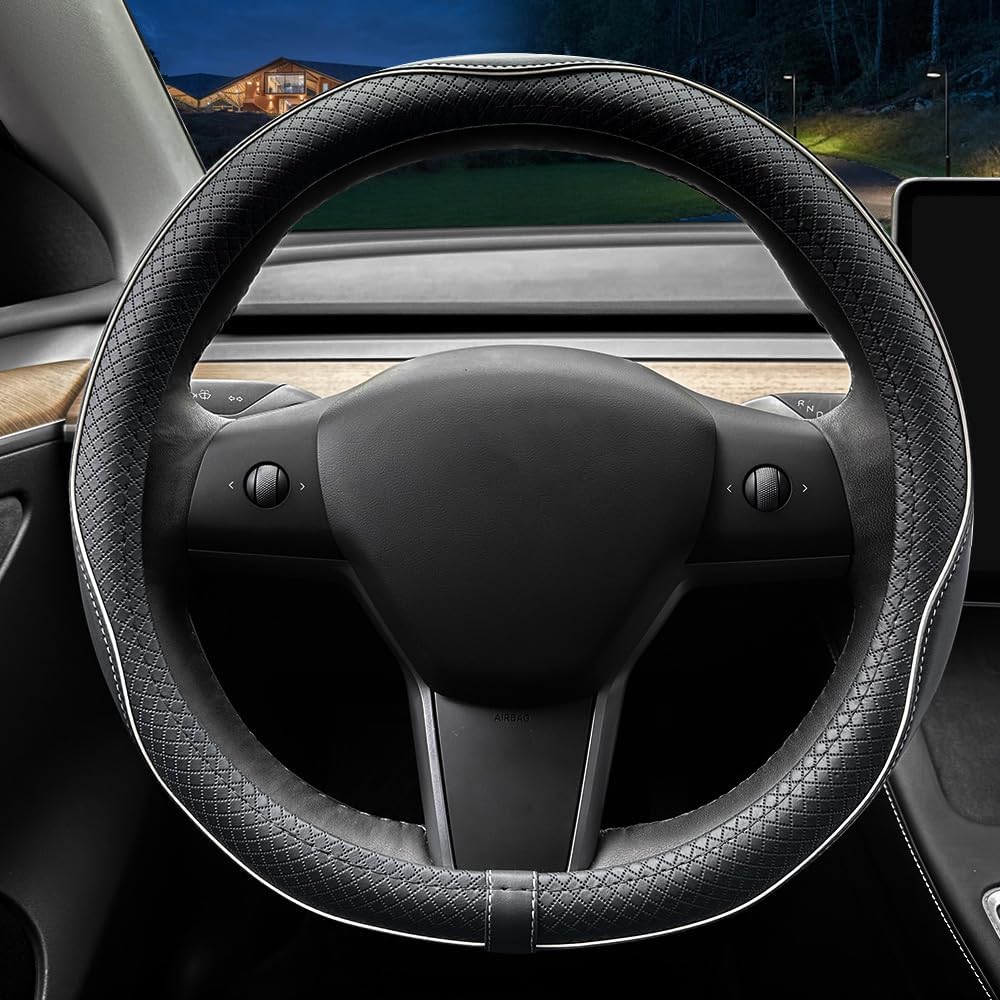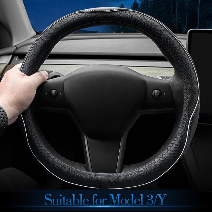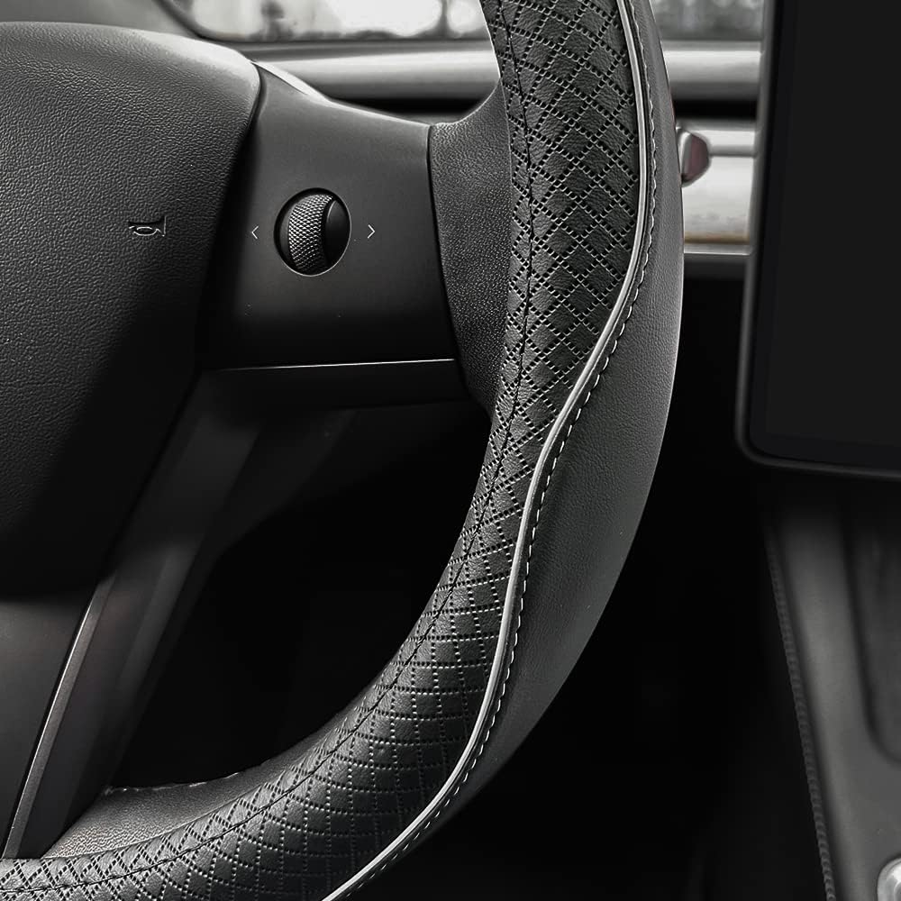 LKWLIKEI Ultra Thin Nappa Leather Steering Wheel Cover for Tesla Model 3/Y, Anti-Slip Design and Interior Modification of Car Accessories.