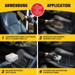 ✅COMPLETE LEATHER CARE SET: Contents of the Macari premium leather care set, consisting of 1 bottle of leather cleansing liquid (500 ml), 1 bottle of leather balm (500 ml), 1 brush and 2 sponges. Includes instructions for use on the packaging. All in one set for cleaning and caring for your favourite products.