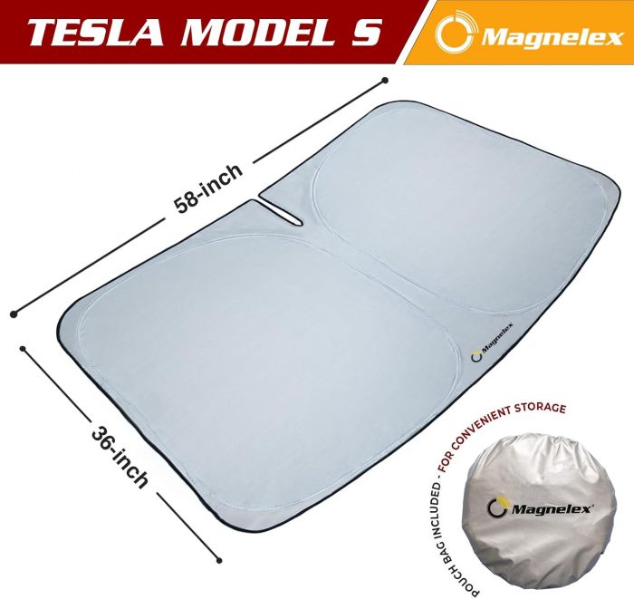 FREE STORAGE BAG – Our Tesla Model S windshield sunshade is easy to store when folded into your Tesla. Each sunshade includes a complimentary pouch to store the folded sunshade in the trunk or under a car seat.