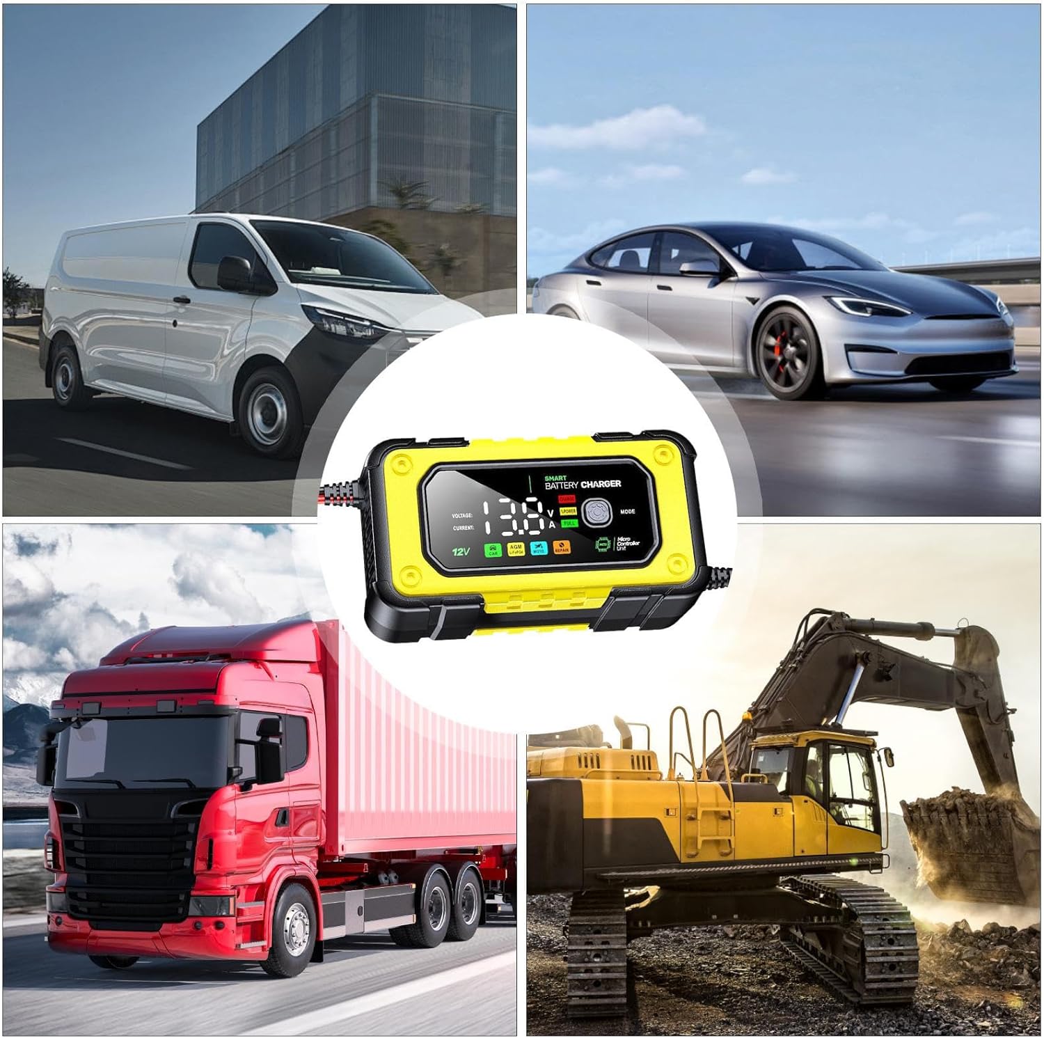 Cargador De Batería De Automóvil, Cargador para Vehículos Eléctricos, Accesorios Inteligentes Mantenedor 12V 24V para Vehículos Camiones Mantenimiento Carga Rápida Reparación Emergencia
