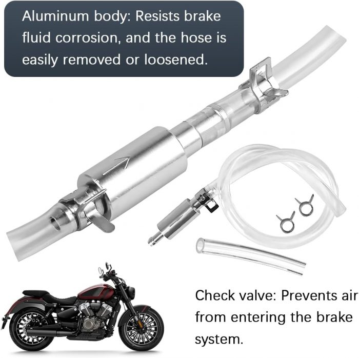 -One Way Valve Design: This product features a one-way valve design with a valve clamp to prevent oil leakage when removing the hose and to block air, dust, and other contaminants from entering the brake system.