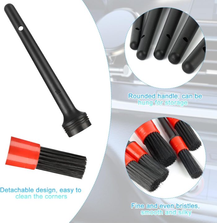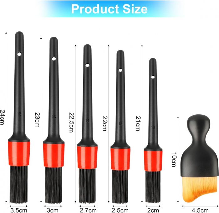 【7 Pieces Auto Detailing Brush Set】: The set includes 5 pieces of nylon detailing brushes of different sizes, 2 soft fine cleaning brushes. When used, nylon detailing brushes are mainly used to clean dirt as well as wash, and soft brushes are mainly used to clean the fine dust on the dashboard, you can choose the suitable auto detail brush kit brushes according to different needs.