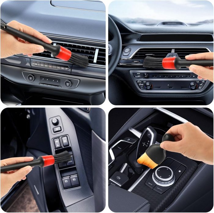 【Unique Design】The soft car detailing brushes with different softnesses and shapes can easily penetrate the interior of the vehicle to remove hidden dust. The car cleaning brush can be used wet or dry to remove dust and dirt from all the cracks inside and outside the car, can clean the entire exterior to keep your car clean.