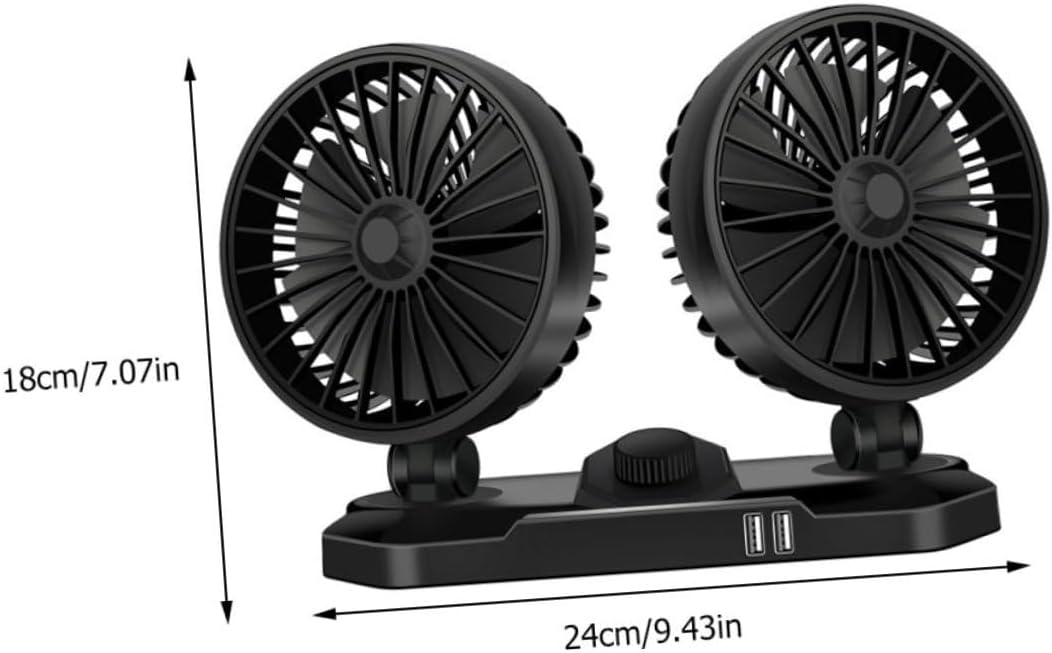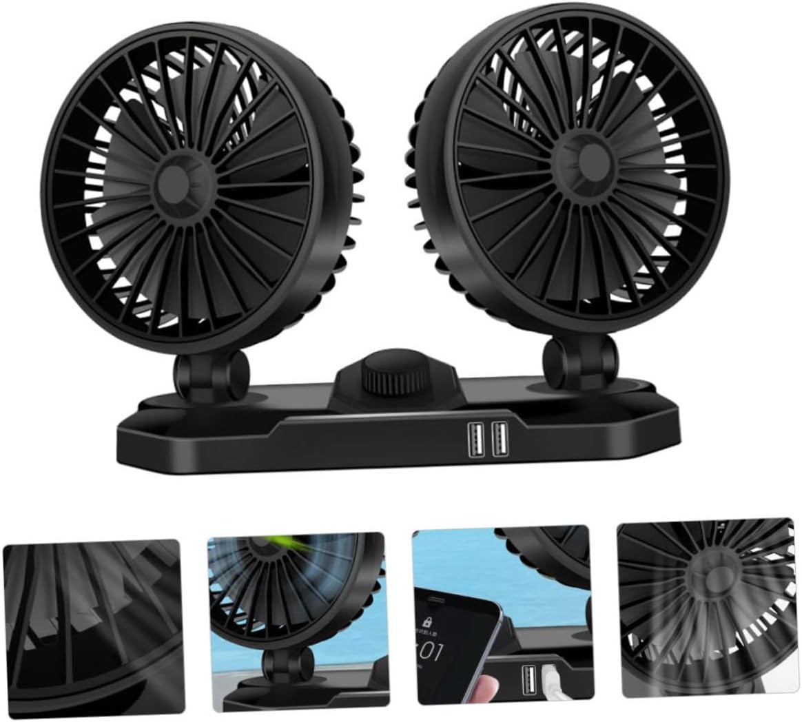 NUOBESTY Electric Fan Mini Double Head USB Adjustable for Vehicles Air Fan for Car Truck Suv and Portable for Home and Office