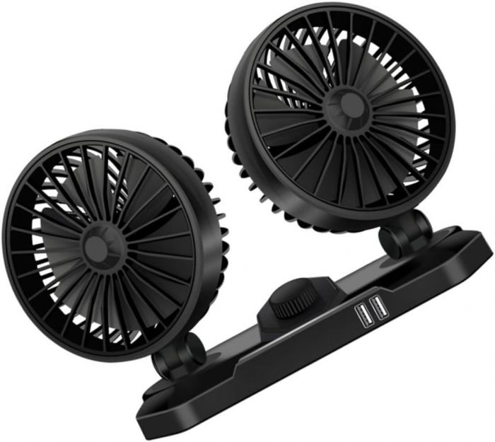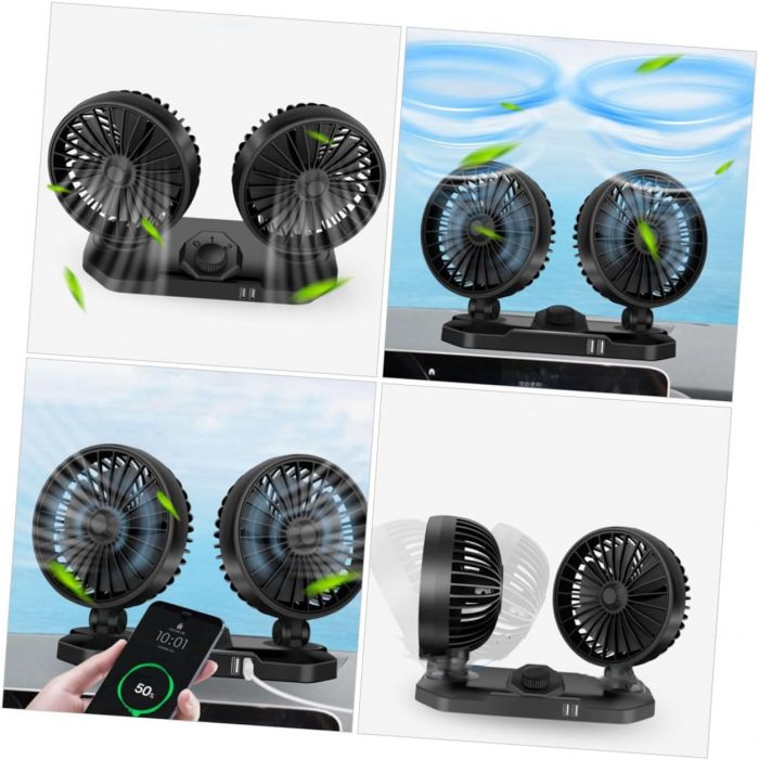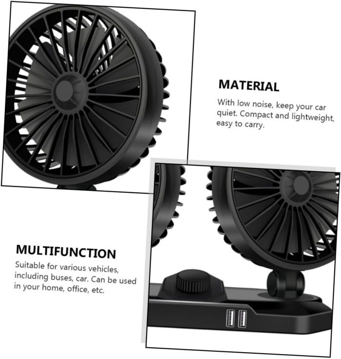 Auto Cooler Fan This dual head car fan can be used to cool your car so that everyone in your car can get the fresh air that in the directions. Automatic USB Fan The low noise and power design works effectively without disturbing your driving to ensure you a pleasant ride.