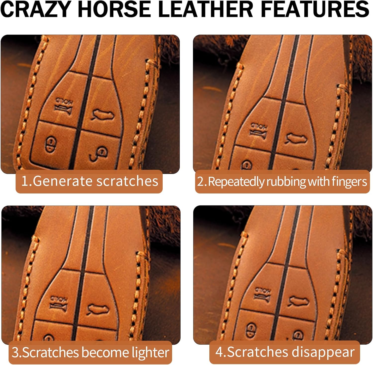 【Características】 La carcasa de la llave del automóvil hecha de cuero Crazy Horse tiene rayones especiales, pero se volverá más y más brillante con el tiempo. Si tu uña raya la cubierta de la llave, puedes restaurarla frotándola suavemente con la palma unas cuantas veces.