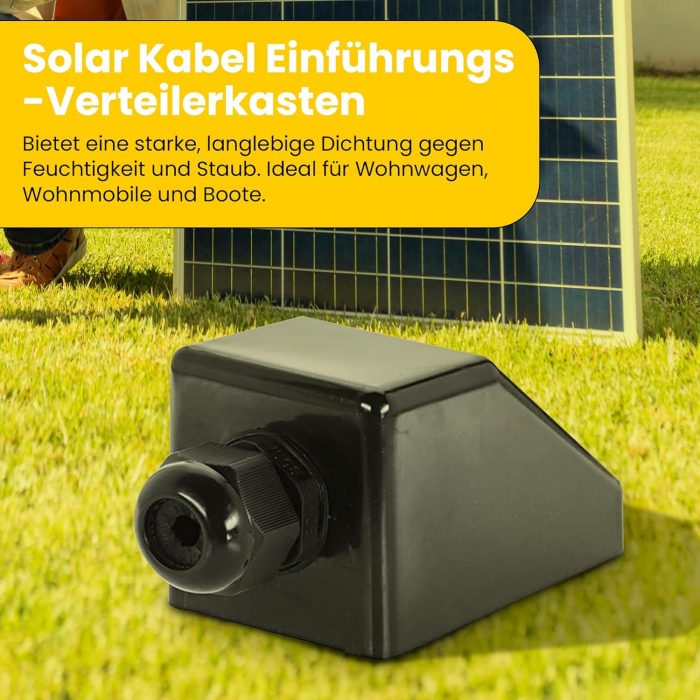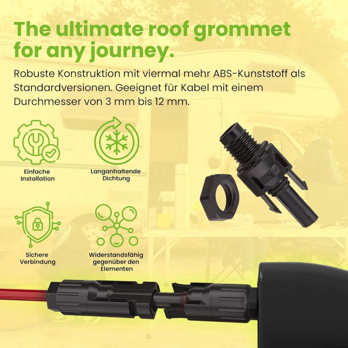 The robust roof cable guide in black offers a reliable solution for mobile use in vehicles such as cars, motorhomes or boats. Made of durable ABS plastic and equipped with an IP68 screw-on connection, it is particularly suitable for areas with medium mechanical loads, such as occasional access during maintenance or cleaning.