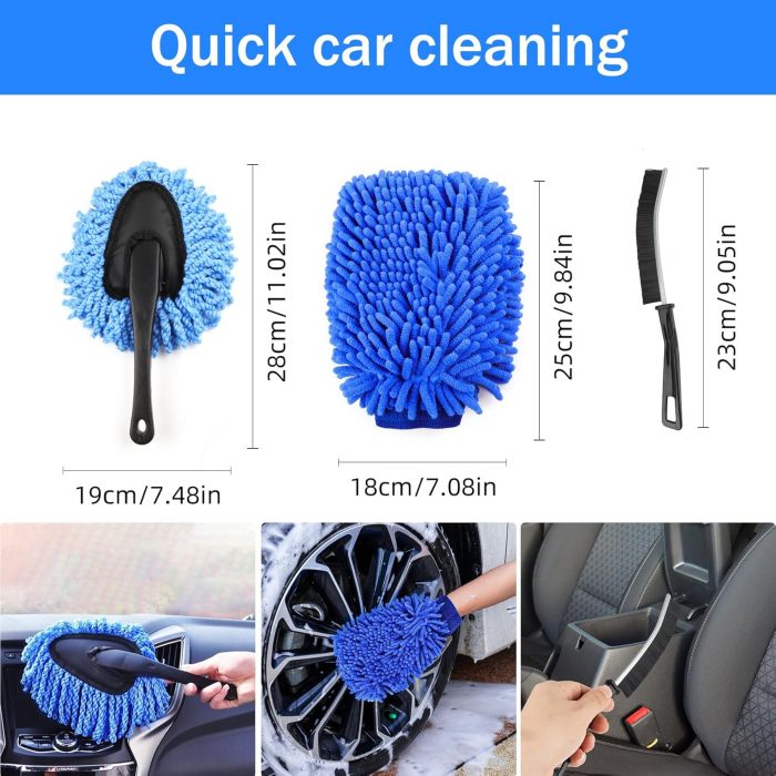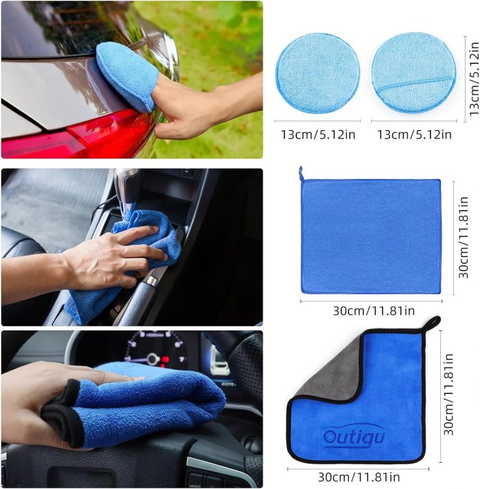 🚗【Car Exterior Cleaning】The chenille car wash mitt is made of super soft microfiber, with soap added to effectively clean the exterior of the car. The soft microfiber cleaning cloth can effectively absorb water and remove dust. It also contains two wax sponges, two soft car wash towels and a super absorbent sponge, which are soft and will not hurt the car.
