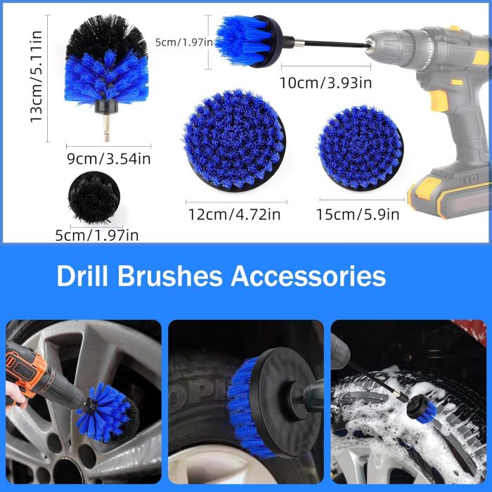 🚗【Car Cleaning & Polishing】5 different sizes of drill brushes with 1 extension attachment can meet all cleaning needs of trucks, motorcycles, bicycles, RVs, boats, wheels, tires, rims, spokes, grilles, engine compartments, exhaust pipes, bumpers, inner fenders, chassis, etc. The car polishing sponge pad kit can be used to polish and make the car look like new.
