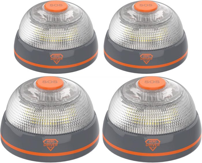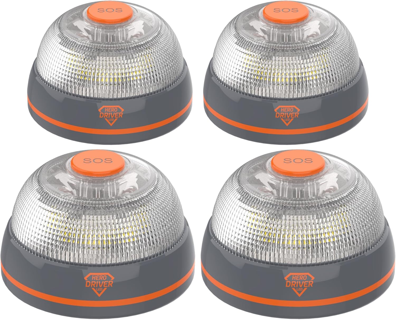 Pack of 4 Hero Driver LED Beacon V16 Connected and Geolocated – Certified by the DGT – Connectivity Included until 2040 – Emergency Car – Mandatory from 2026 – Vodafone SIM Card Free