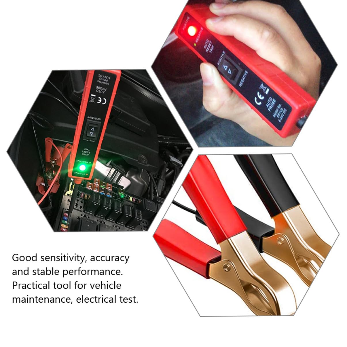 Probador de fallas de automóvil: clips positivos y negativos con fuerte, no se caen fácilmente, lo que le proporciona una mejor experiencia de uso, probador de circuito eléctrico de automóvil