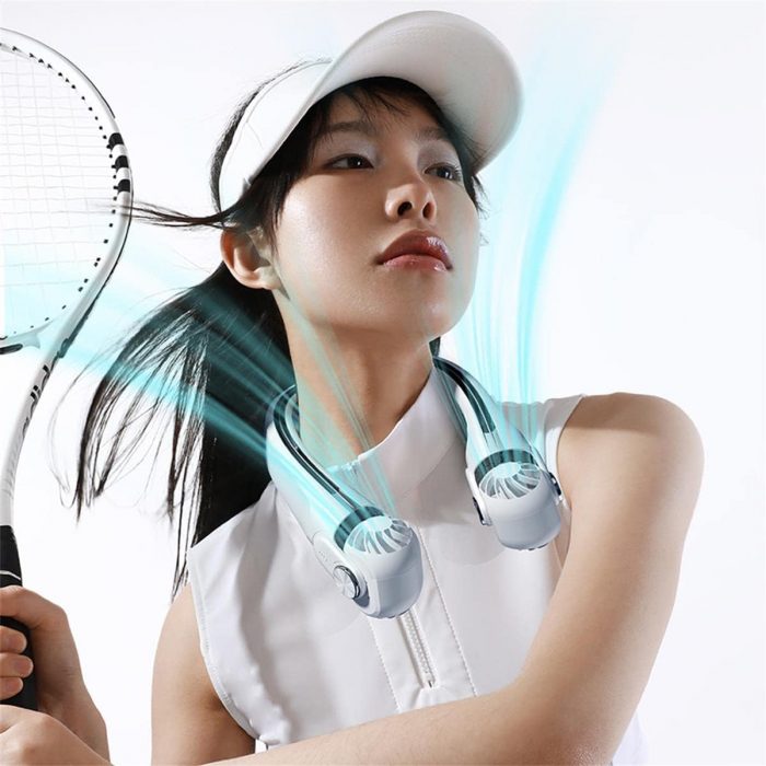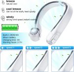 El ventilador de cuello portátil se ve como auriculares, puede liberar sus manos mientras tiene un estilo elegante, puede ser adecuado para deportes al aire libre, entrenamientos en interiores, oficina, gimnasio, viajes y campamentos.