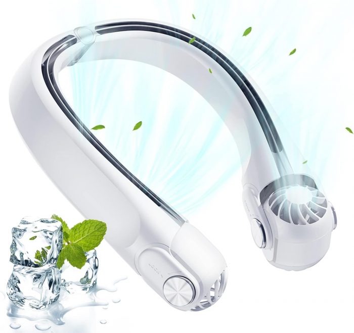 ▶ Fresco e sicuro: ventilatore da collo aggiornato, innovative pale del ventilatore turbo e design della galleria del vento, efficace divisione dell’aria e sensazione più delicata della brezza fresa, il design del ventilatore da collo senza lama può essere utilizzato in sicurezza da bambini e anziiiiiiii. ani.