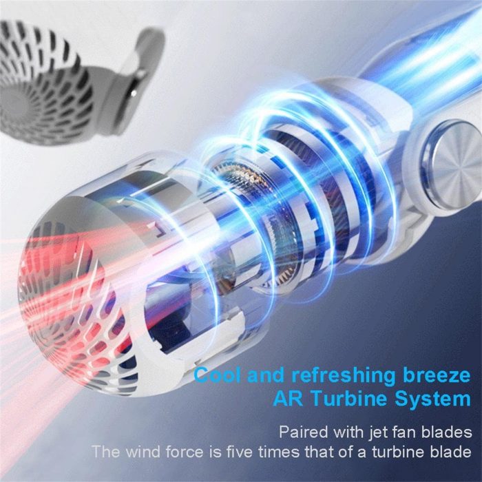 Equipado con este motor turbo sin escobillas AR con ventilador de cuello colgante, le brinda más experiencia de enfriamiento, el diseño mejorado puede mejorar el flujo de aire que circula, simplemente cuelgue el ventilador en el cuello para aliviar el calor del verano.