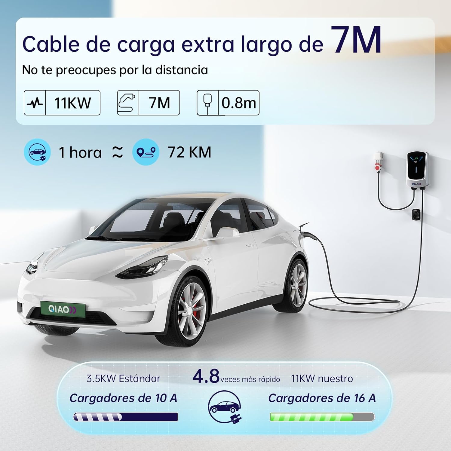 DISEÑO FACIL DE USAR: – Equipado con un cable de carga de 7 m para todas sus necesidades de carga diarias, lo que le permite cargar su vehículo en cualquier lugar. Incluye un soporte para cable EV para colgar el cable del cargador EV después de la carga. Además, dispone de soporte de pared, apto para instalación en paredes o pilares (pilares no incluidos). Un electricista profesional puede instalarlo en interiores o exteriores, un cargador de vehículos eléctricos imprescindible para una carga segura en casa.
