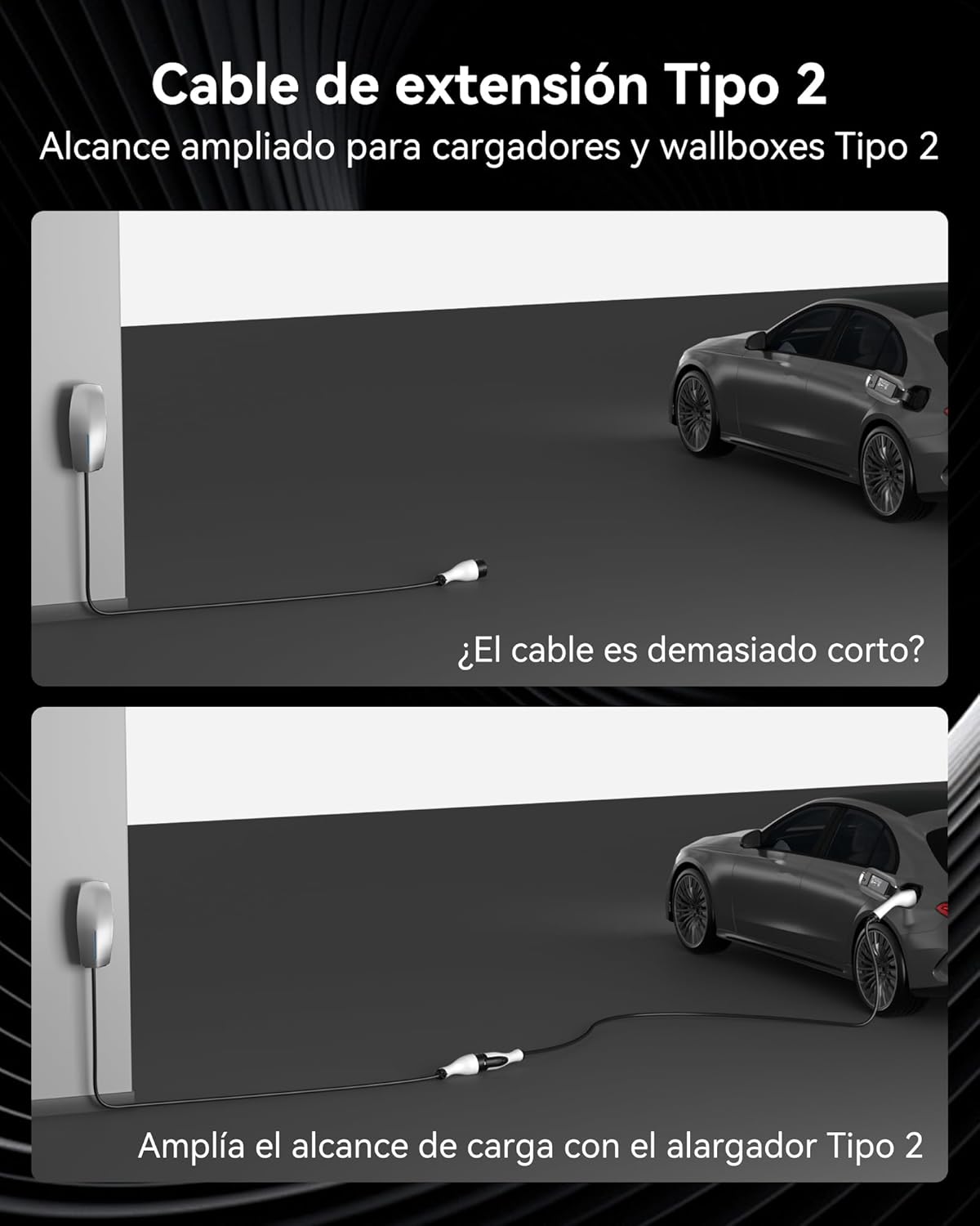 Mayor alcance y flexibilidad: amplíe instantáneamente el alcance de carga de su cargador o caja de pared EV tipo 2 con el cable incorporado. Perfecto para cajas de empotrar domésticas, estaciones de carga de CA y cargadores portátiles. Ideal para uso flexible en garajes, cocheras, estacionamientos subterráneos o áreas de trabajo: cargue a distancias mayores sin preocuparse por las limitaciones del cable.