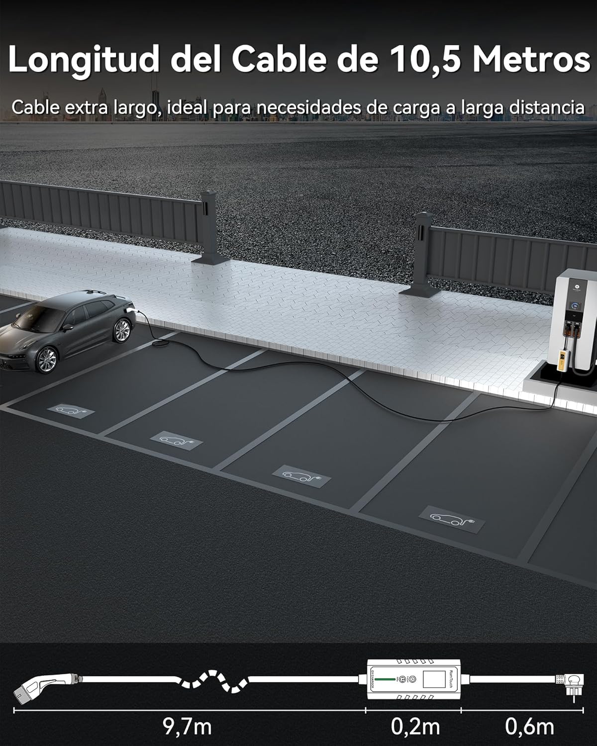 Lo que recibirá: Cargador para coche eléctrico (3,7 kW, 10,5 m, Tipo 2, Schuko), manual de usuario, bolsa de transporte y un amable servicio de atención al cliente.