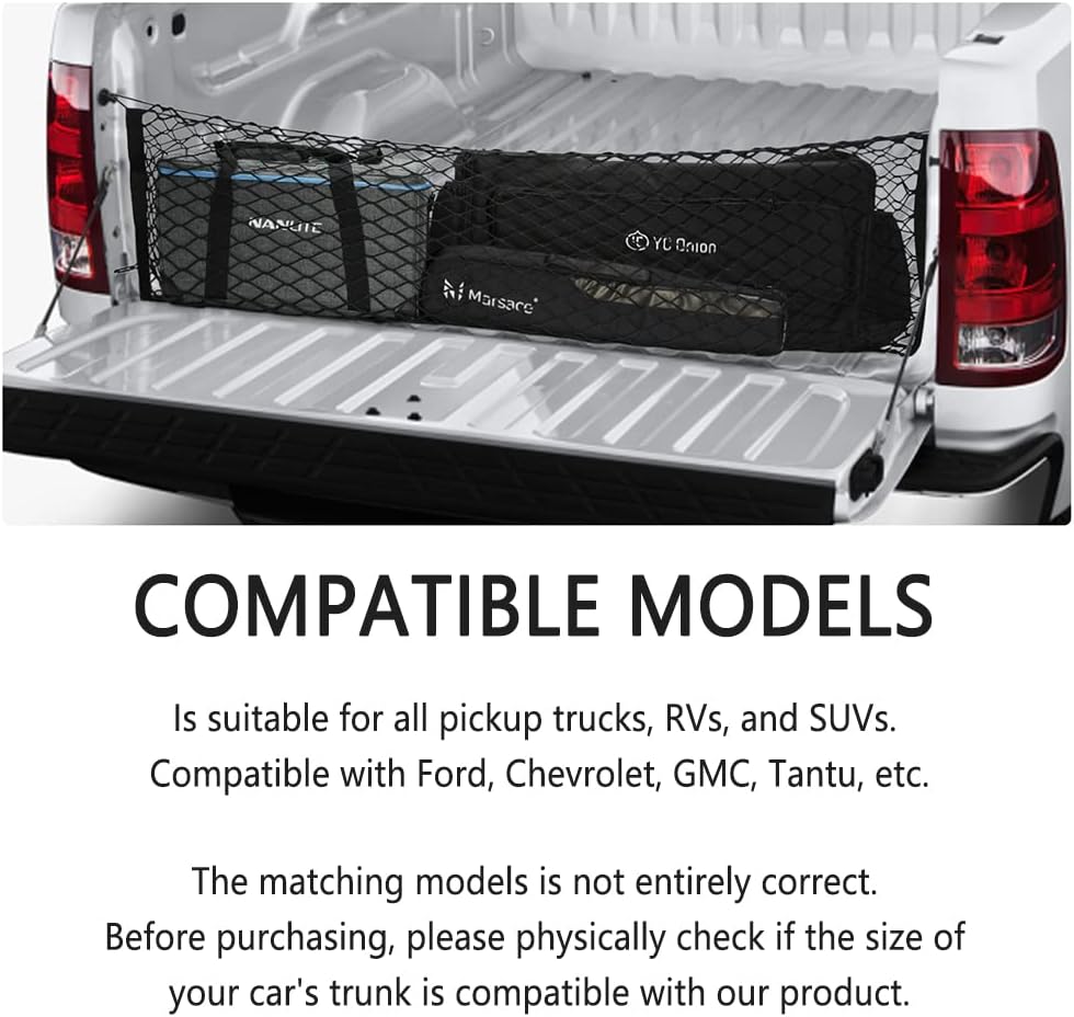 ❤【Wide Application】125 x 40 cm (XL) Car Trunk Net for All RVs and SUVs, Compatible with Ford, Chevrolet, GMC etc. 110 x 40 cm (L) Car Trunk Net is suitable for most car models on the market, most recommended for truck owners. Please physically check whether the boot size of your car is compatible with our products before purchasing.
