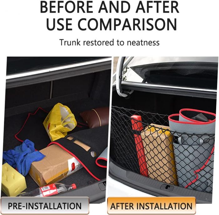 【Easy Installation】To better fit your car boot, please measure the distance between the trunk buckles before purchasing. This elastic net is quick and easy to install, no tools are needed for installation and tedious steps are required for installation, just attach the four buckles to the preset snaps on the trunk and you’re ready to go.