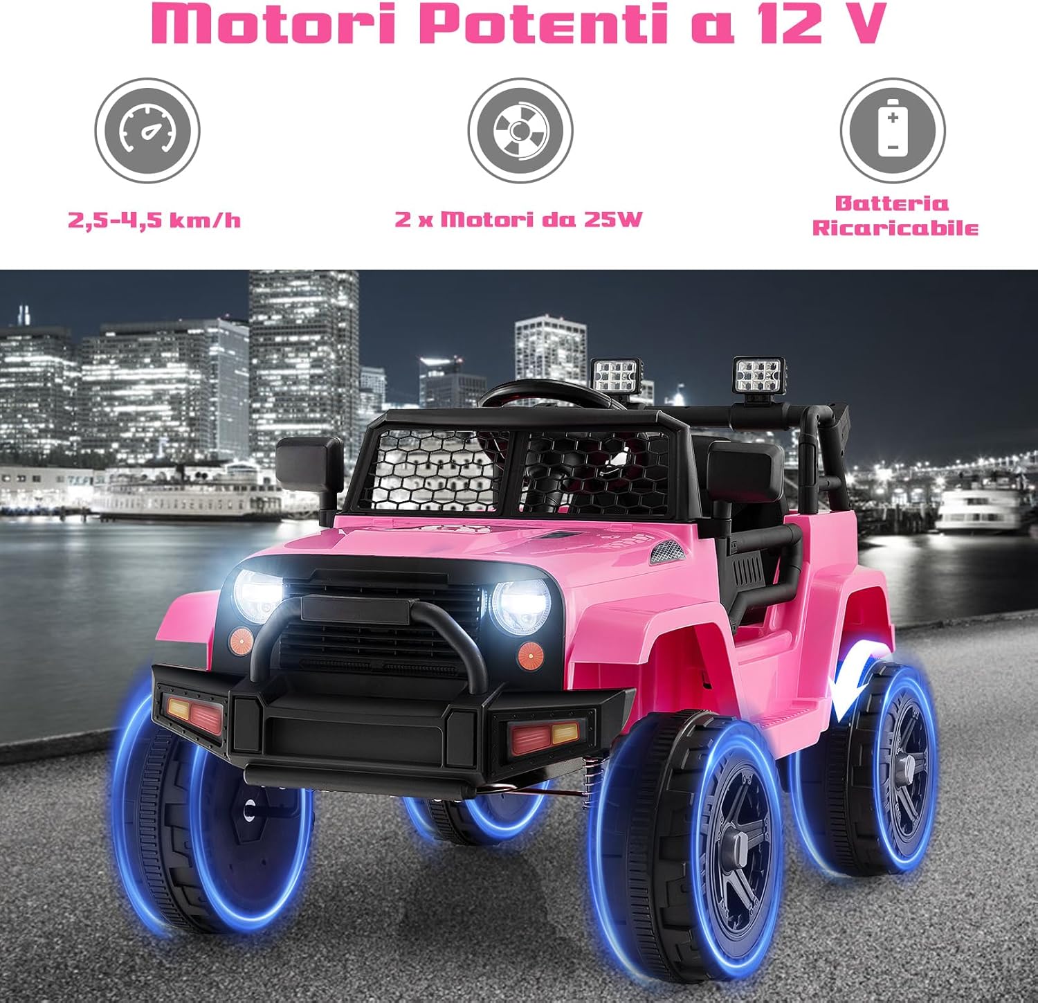 RELAX4LIFE Jeep eléctrico de 2 plazas para niños de 12 V con control remoto de 2,4 G, velocidad ajustable, adelante/atrás, derecha/izquierda, bocina, música/puerto USB (modelo 1-rosa)