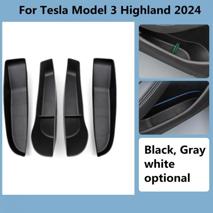 Door Side Storage Box For Tesla New Model 3 Highland 2024, Door Organizer Tray Door Handle Armrest Door Pocket Inserts, TPE Door Slot Tray Mats For New Model 3 + Accessories, 4PCS