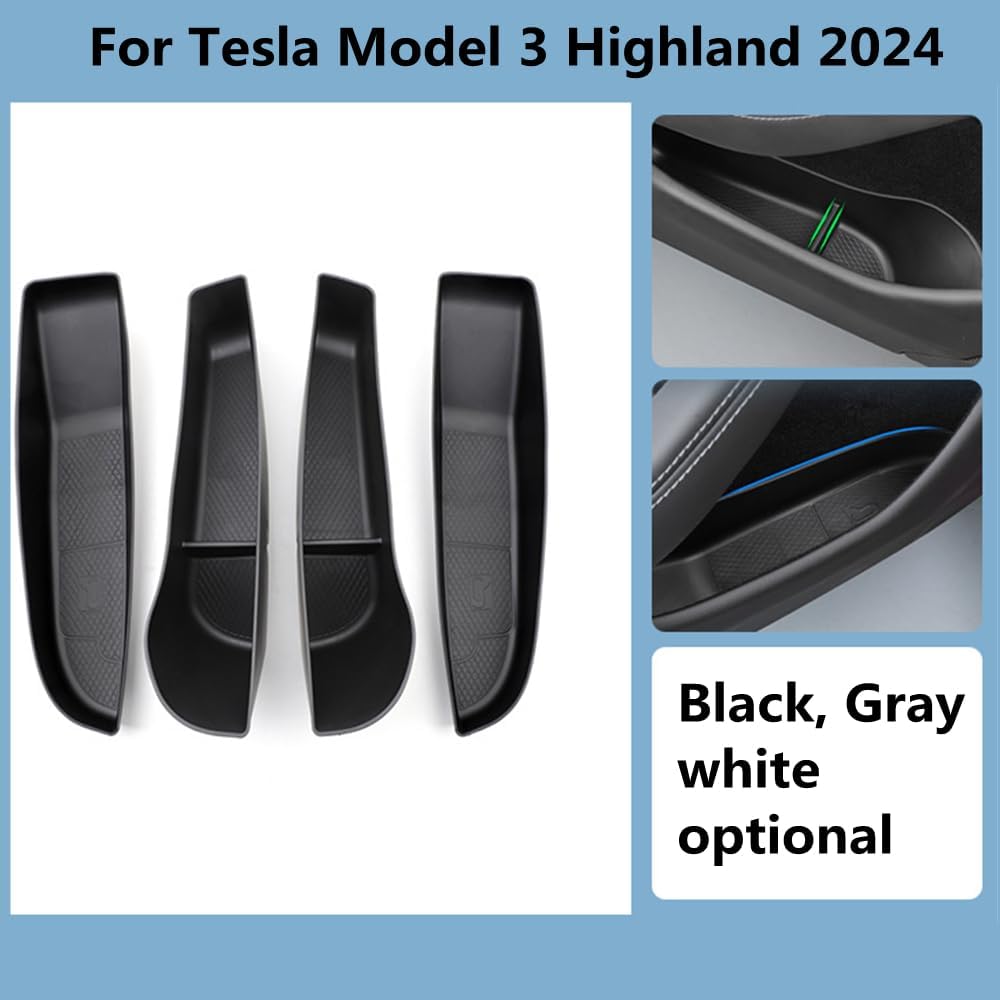 SAMTN Door Side Storage Box for Tesla New Model 3 Highland 2024, for New Model 3 + Accessories, 4PCS (Black)