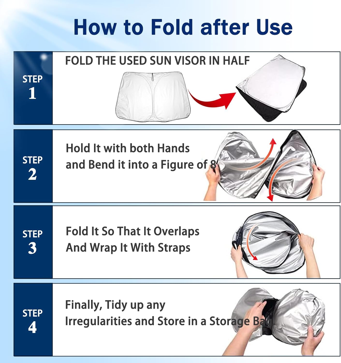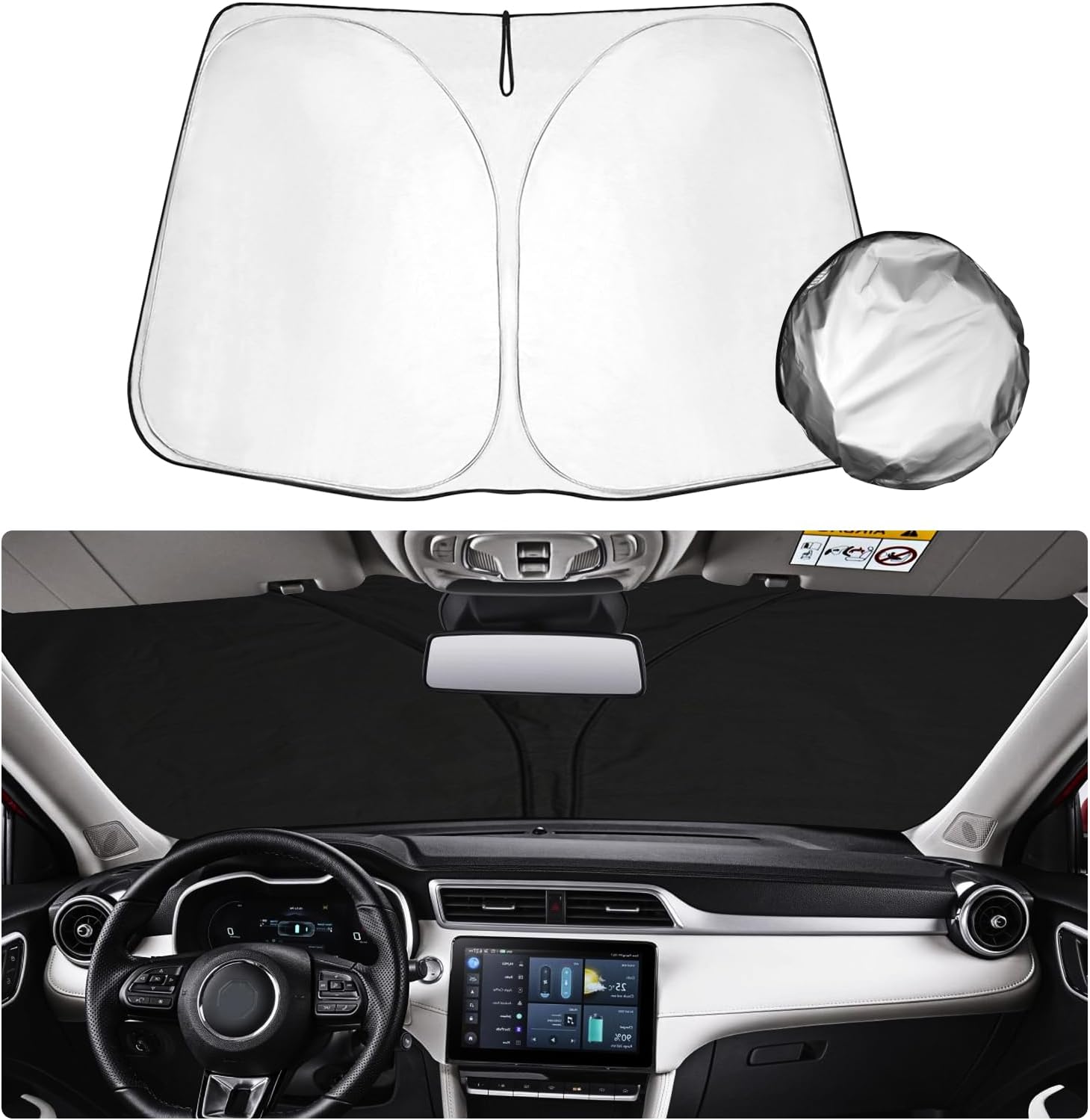 👍【Durable and Efficient】The windshield sun shade has a lightweight and foldable design that is easy to handle and use. The sunshade folds and unfolds in an instant, so it can be quickly and easily assembled and disassembled.