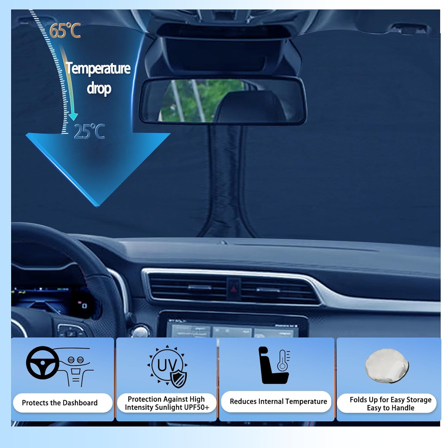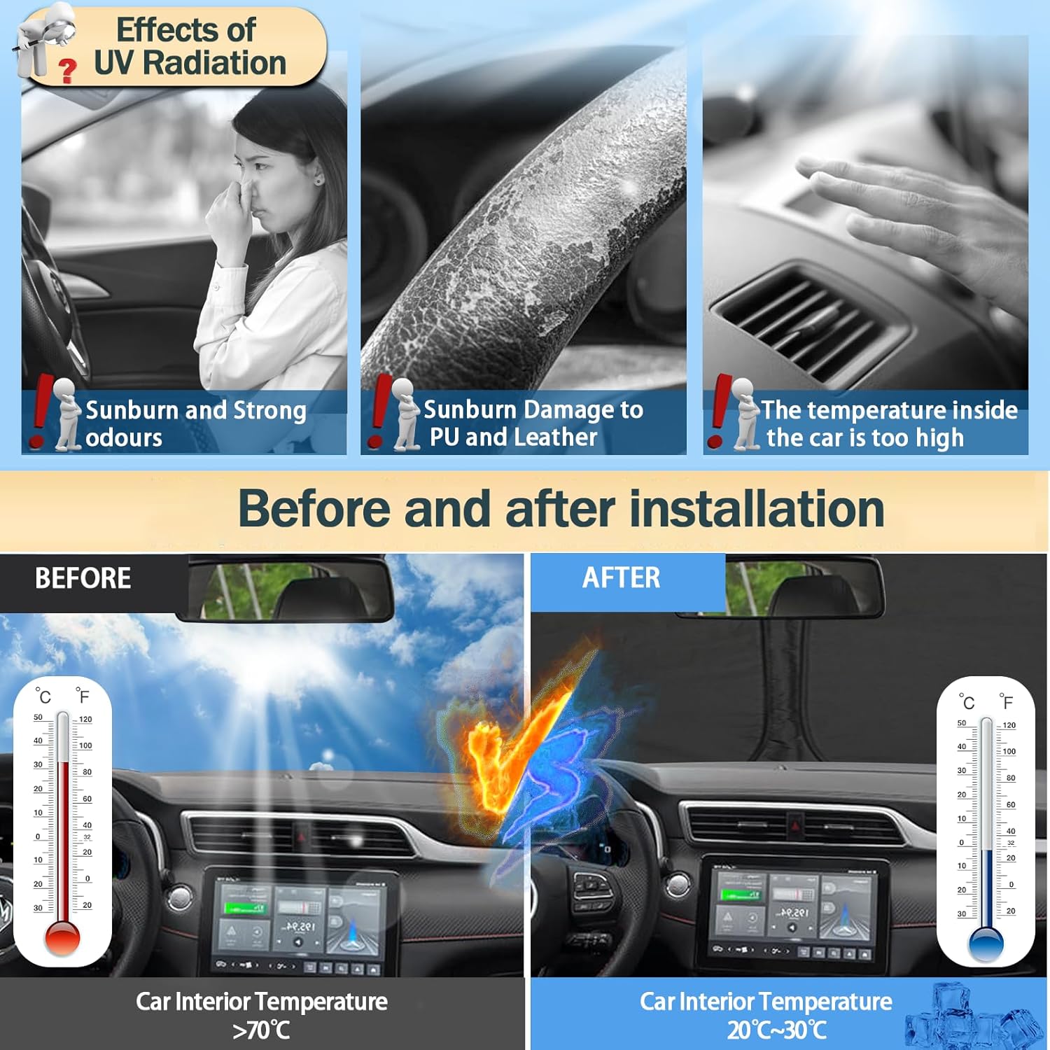 👍【REDUCE INTERIOR TEMPERATURE】Keep your car interior cool at all times from the scorching heat on hot summer days.