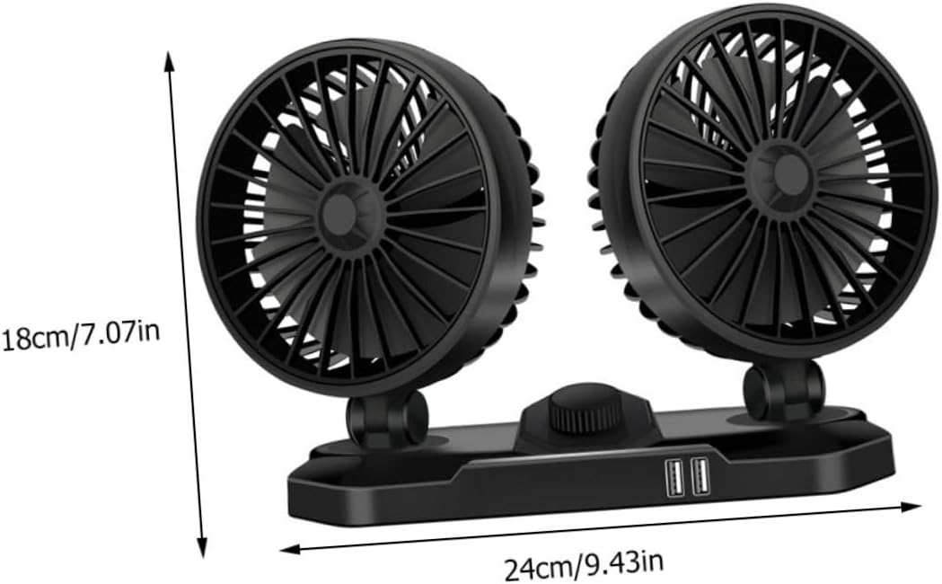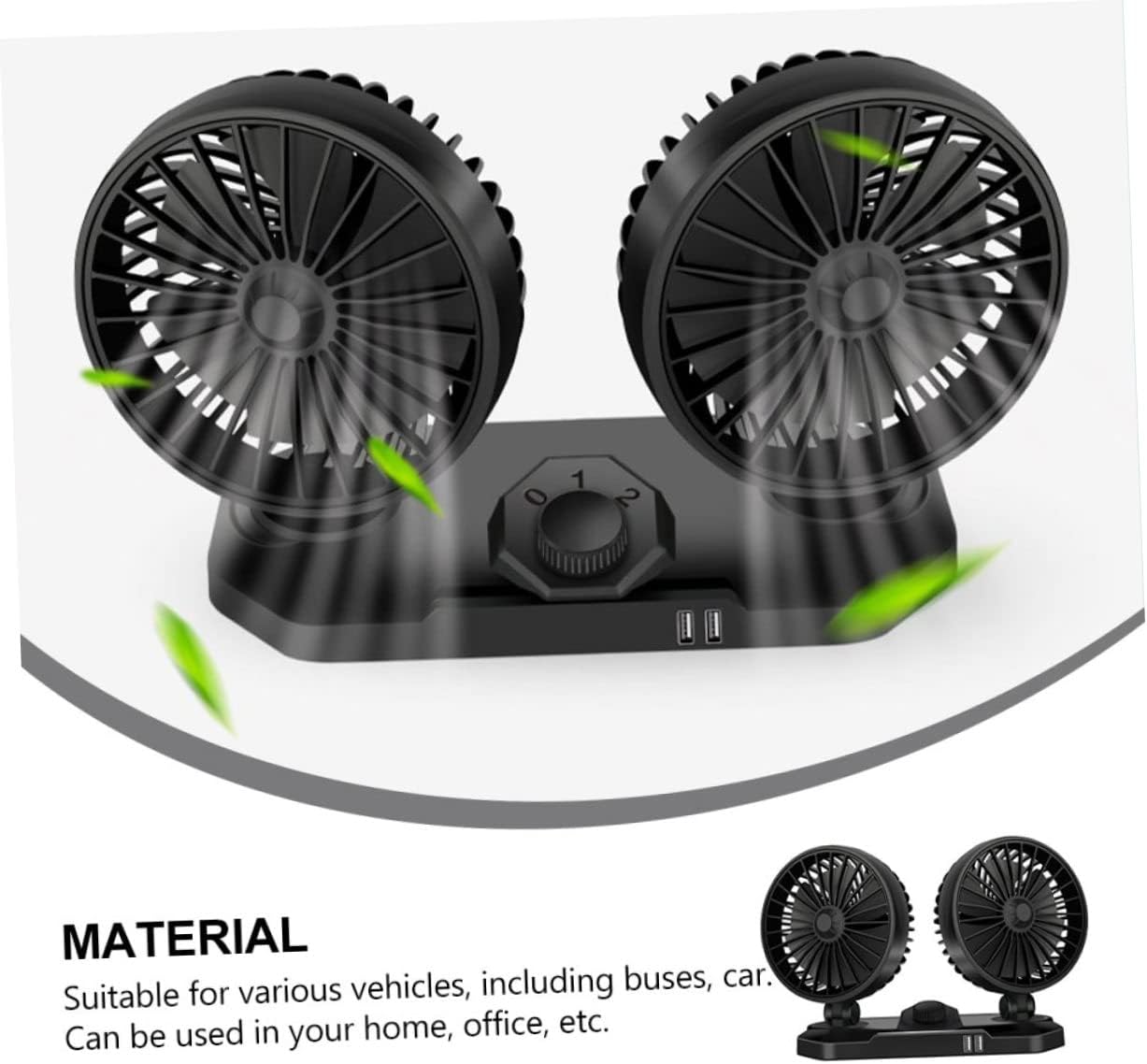 SHINEOFI Electric Double Head Car Fan Small Car Cooler Fan Mini Vehicle Cooling Fan USB Vehicle Fan AbS Black