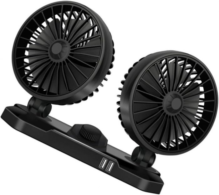 Vehicle Air Fan Excellent choice of car vent fan with safe design. Car Cooling Fan The dual head rotating fan can help cool the driver, your babies or your pet; it will cool your car faster than the air conditioner alone.