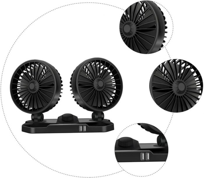 – Dual USB port structure design, double heads, good , small vibration automatic electric fan.