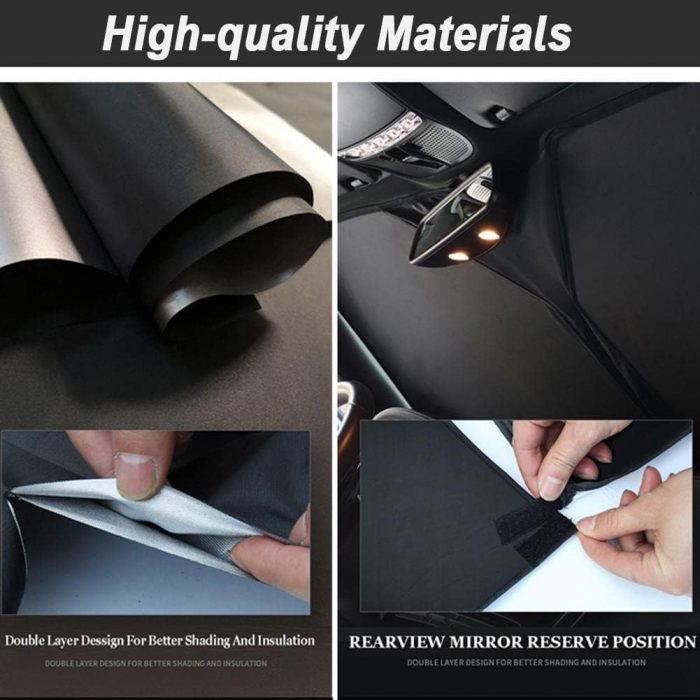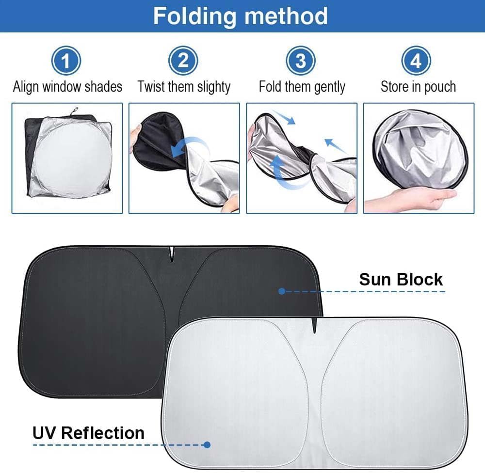 【High Quality Material】The car front windshield sun shade is made of high quality material, has a good heat insulation effect, is lightweight and durable, not easy to break, block harmful light and maintain your vehicle.