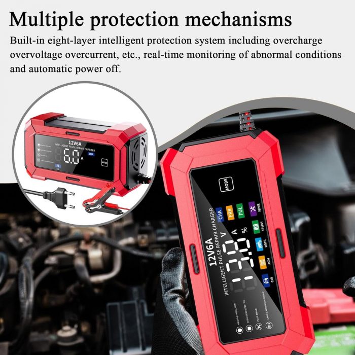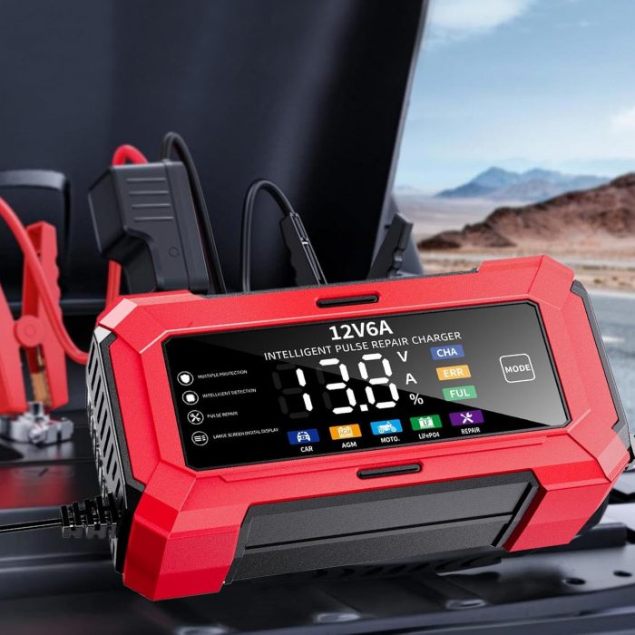 Carga Estable y Rápida: Funcionamiento consistente a 12V/6A diseñado para requisitos de baterías vehiculares estándar con alto rendimiento de recuperación.