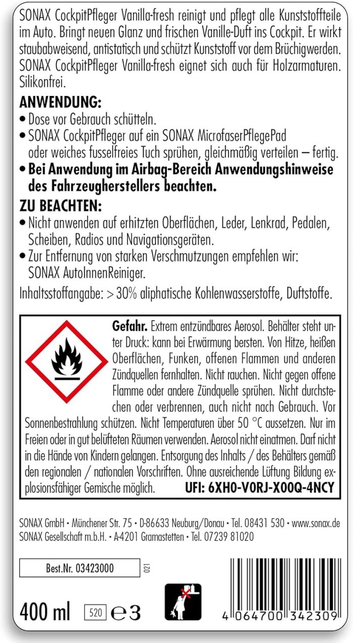 Sé el primero en valorar “SONAX 03423000 – Dashboard Cleaner, Vanilla Scent” Cancelar la respuesta