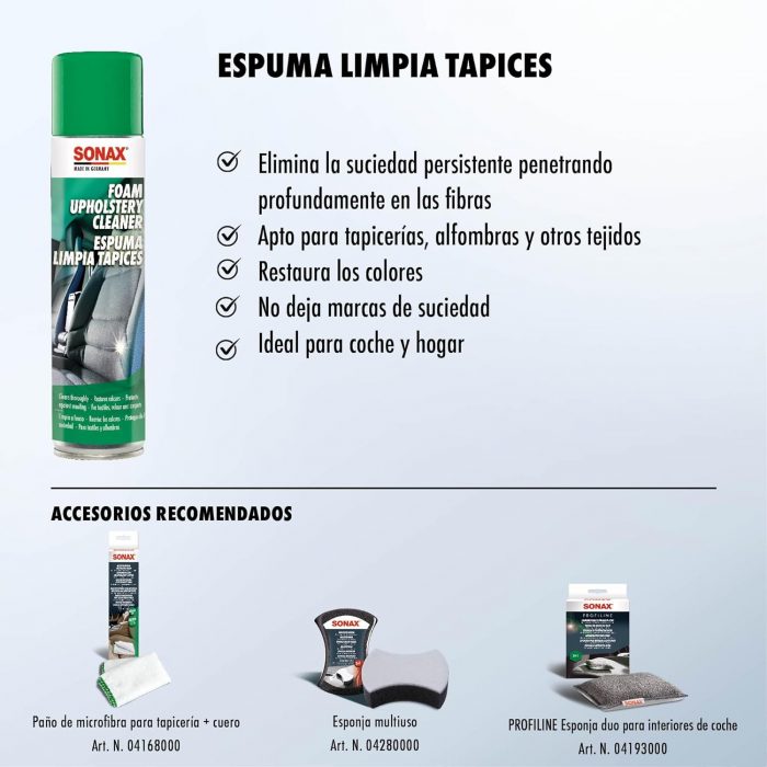 Sé el primero en valorar “SONAX Upholstery and Carpet Cleaner Foam 400ml Renews Colours for Carpets and Car Seats | No.03062000-820” Cancelar la respuesta