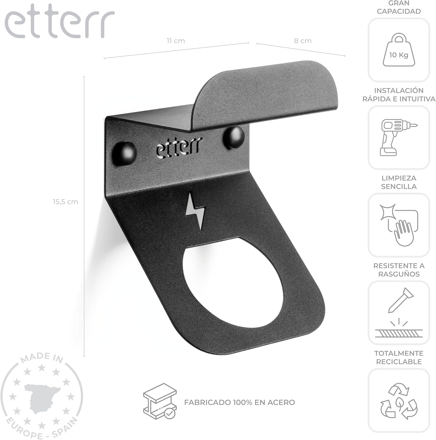 DISEÑO ESTÉTICO Y COMPACTO: Este soporte para la manguera o cargador de su coche eléctrico ha sido cuidadosamente diseñado para fusionar funcionalidad con estilo. Su forma elegante y sus dimensiones reducidas garantizan que se integre discretamente en cualquier entorno, desde el garaje de su casa hasta el estacionamiento de su lugar de trabajo. Diseñado para ocupar el mínimo espacio sin sacrificar su presencia, complementa a la perfección la estética moderna de los espacios, aportando un toque de sofisticación allí donde se coloque.