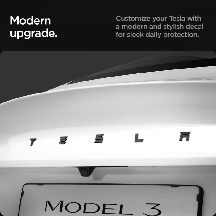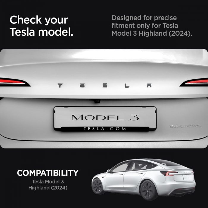 Spigen Tesla Model 3 Highland 2024 Rear Emblem Logo Stickers, PC Scratch Resistant Material, Designed for Tesla Model 3 Accessories – Black